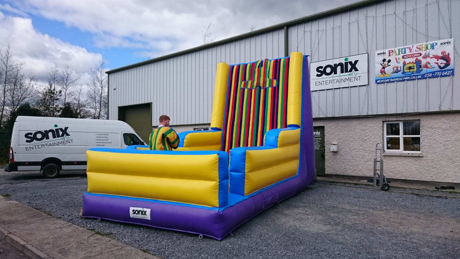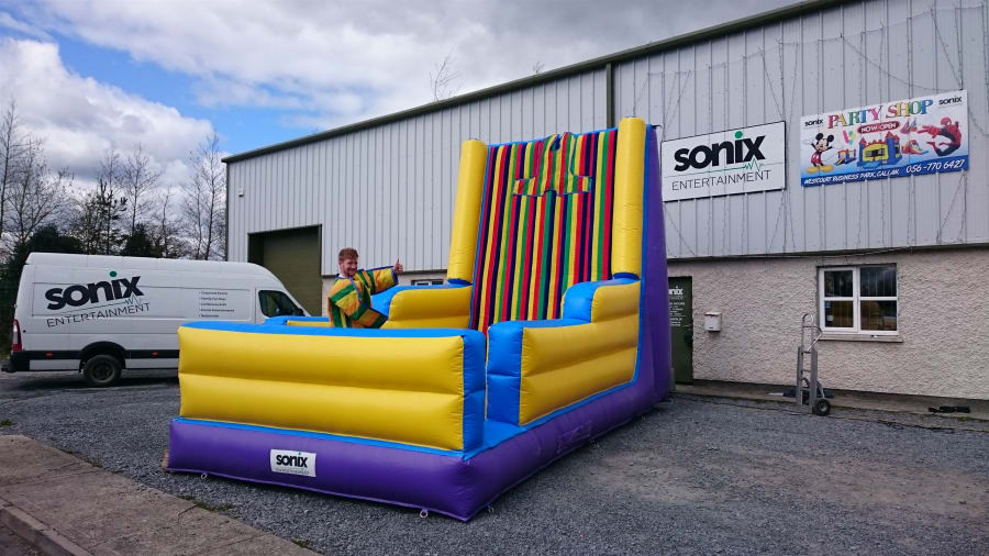Climb into a Velcro suit, take a run and bounce up onto the Velcro wall and see if you can stick to the wall. Whoever sticks to the highest point wins!