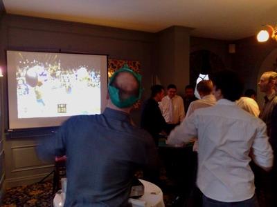 Nintendo Wii on a large scale. We use a projector to plug the Wii into and beam it onto our 8ft screen. There are a range of games available...