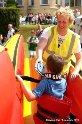 A Beetee Twin lane bungee-run Game. A resistance game, competing against an opponent to see who can get the furthest. You are simply harnessed and attached to the inflatable via a bungee cord and must run as far as you can before being pulled back by the bungee cord.